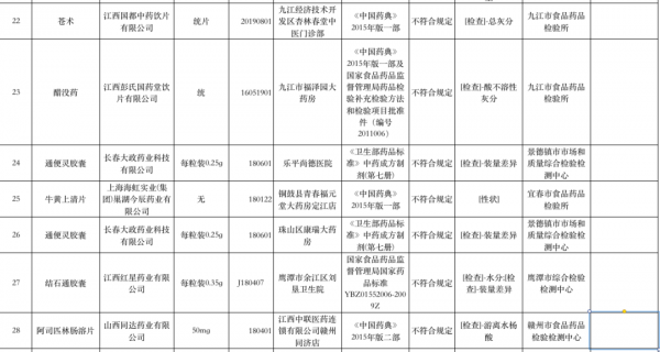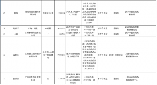 經(jīng)核查確認,本期監(jiān)督抽檢信息公布如下:30個品種33批次不符合標(biāo)準規(guī)定,不符合規(guī)定項目包括性狀、檢查、含量測定等。