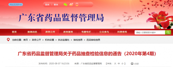 8月7日,廣東省藥監(jiān)局發(fā)布了“2020年第4期藥品抽查檢驗(yàn)信息的通告”(以下簡(jiǎn)稱“抽查通告”)。