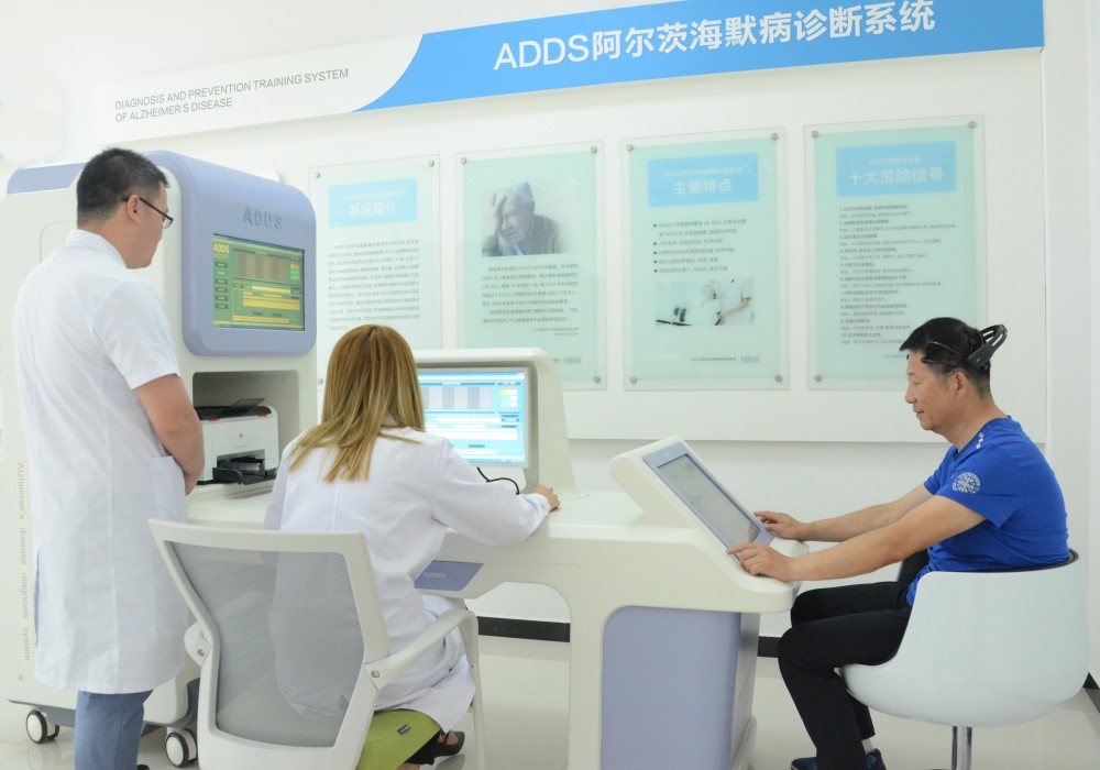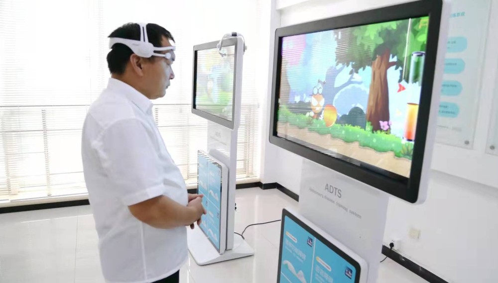 一旦發(fā)現(xiàn)記憶力出現(xiàn)下滑跡象,ADTS記憶力障礙訓(xùn)練系統(tǒng)便能成為得力“助手”。該系統(tǒng)是在動態(tài)腦電及行為控制基礎(chǔ)上開發(fā)的可視化高齡親和及記憶力退化訓(xùn)練設(shè)備,基于神經(jīng)可塑性原理,結(jié)合腦機(jī)接口技術(shù),通過意念控制訓(xùn)練游戲的進(jìn)程,不斷地集中注意力和放松,提升注意力、記憶力、計(jì)算力、定向力、語言力和綜合能力等多維度指標(biāo),有效提高腦電復(fù)雜度及近似熵,激活大腦皮層神經(jīng)細(xì)胞,阻止記憶力及腦功能的進(jìn)一步退化及病變。它可以作為體檢中心設(shè)備,與認(rèn)知功能障礙篩查設(shè)備結(jié)合,提供閉環(huán)的AD健康管理服務(wù),也可以針對長期高強(qiáng)度工作導(dǎo)致大腦疲勞、記憶力下降的年輕人,提供有針對性的訓(xùn)練,幫助他們強(qiáng)化記憶能力,守護(hù)大腦的“青春活力”。