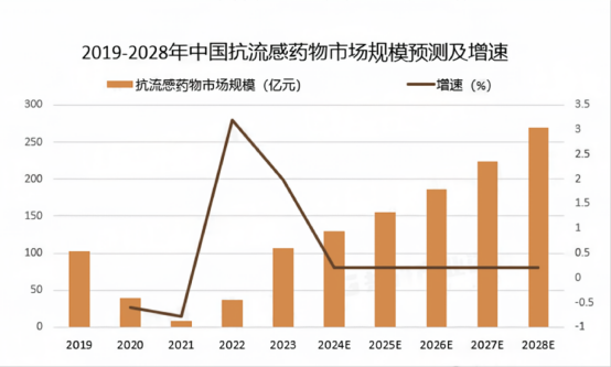 2019-2023年,中國(guó)抗流感藥械市場(chǎng)規(guī)模由102.2億元增加至107.4億元,預(yù)計(jì)到2028年中國(guó)抗流感藥械市場(chǎng)規(guī)模將增加至269.1億元。