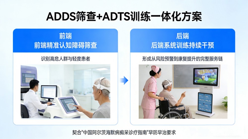 ADDS認知功能障礙篩查系統(tǒng):依托非侵入式腦機接口與AI深度學(xué)習(xí)算法,15分鐘快速完成記憶、注意力、執(zhí)行功能等6大認知維度量化評估,準(zhǔn)確率超90%,兼顧三甲醫(yī)院精準(zhǔn)診斷與社區(qū)大規(guī)模普篩需求。