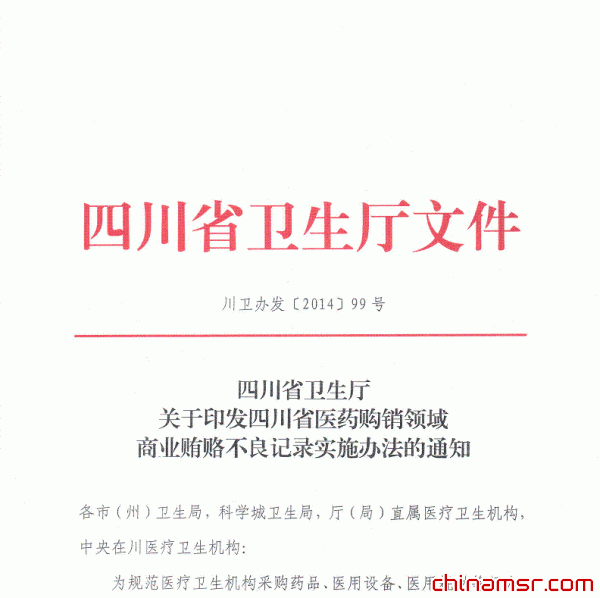 2014年四川省衛(wèi)生廳關(guān)于印發(fā)醫(yī)藥購銷領(lǐng)域商業(yè)賄賂不良記錄實施辦法的通知 (百度蟲醫(yī)藥商務(wù)網(wǎng))