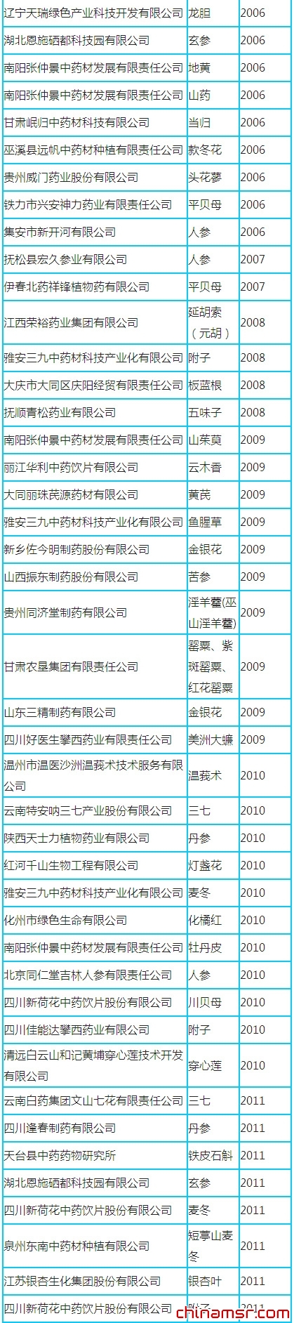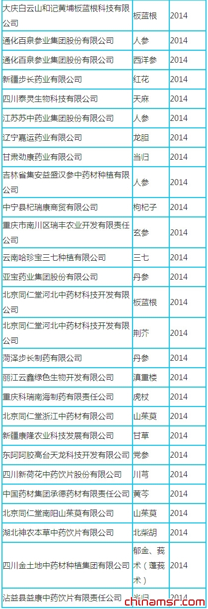 2004-2014獲得GAP認(rèn)證的企業(yè)品種名單一覽表