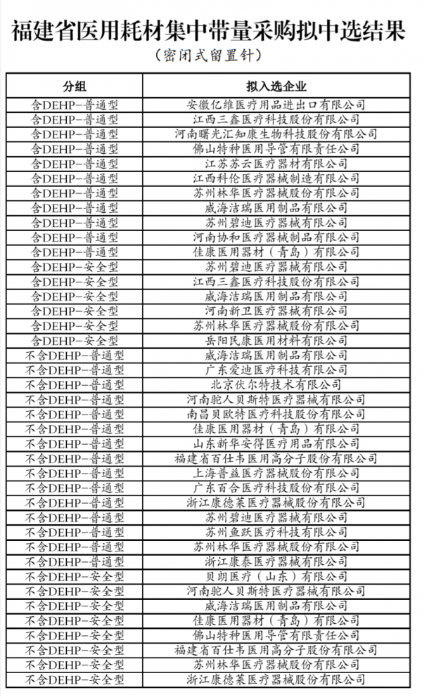 密閉式留置針擬中選企業(yè)包括BD、山東新華安得、三鑫醫(yī)療、蘇州魚躍等械企;鎮(zhèn)痛泵擬中選企業(yè)包括、江蘇愛朋、河南駝人、珠海福尼亞等械企。