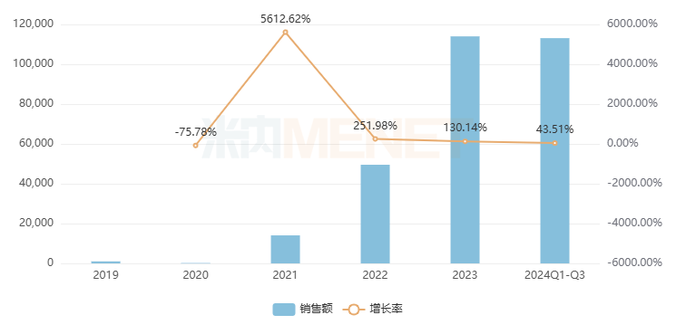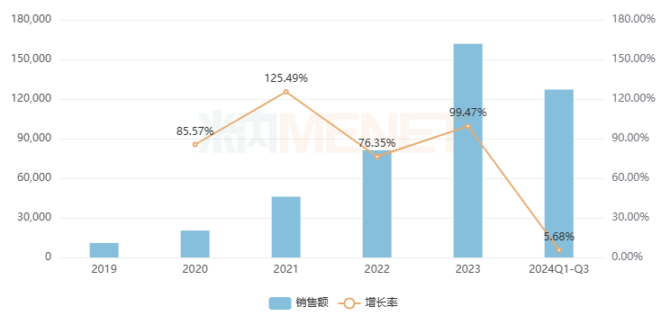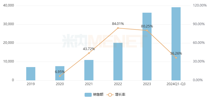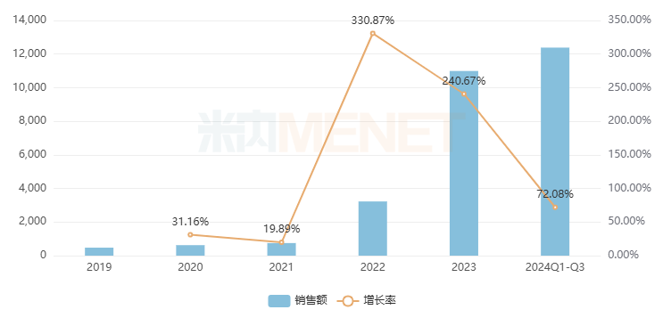 在中國網(wǎng)上藥店終端中成藥市場,太極集團(tuán)的銷售額從2021年起呈現(xiàn)高速增長態(tài)勢,2024年Q1-Q3達(dá)到3.9億元,已超過2023年全年。
