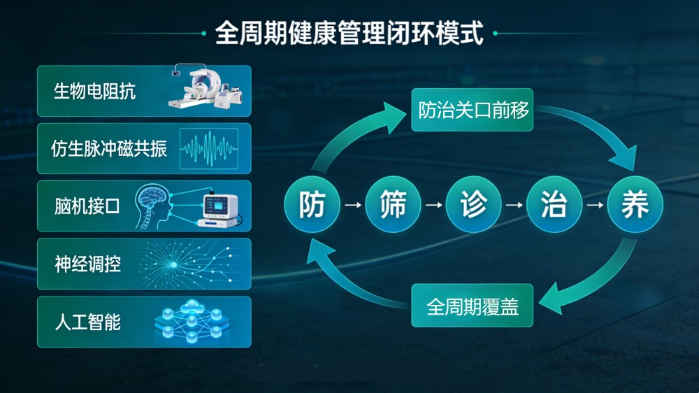 面對這一嚴峻形勢,惠斯安普依托自身在生物醫(yī)學領(lǐng)域的技術(shù)積淀,以生物電阻抗、仿生脈沖磁共振、腦機接口、神經(jīng)調(diào)控、人工智能五大核心技術(shù)為支撐,創(chuàng)新性地構(gòu)建起覆蓋“防、篩、診、治、養(yǎng)”全環(huán)節(jié)的閉環(huán)模式,將防治關(guān)口前移,實現(xiàn)從早期預防到全程康養(yǎng)的全周期覆蓋,精準破解傳統(tǒng)防治模式碎片化、精準度低、覆蓋范圍有限的痛點。