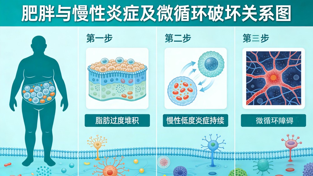 肥胖作為慢性代謝性疾病,其帶來(lái)的代謝失衡與慢性炎癥,會(huì)直接攻擊人體微循環(huán)系統(tǒng),形成“代謝紊亂—微循環(huán)受損”的惡性循環(huán),讓脂肪更難分解、代謝持續(xù)走低,健康風(fēng)險(xiǎn)不斷疊加。